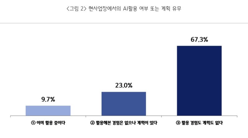 '활용 경험이나 계획이 전혀 없다'는 67.3%로 향후 활용 계획이 있다(23.0%)는 응답을 크게 앞섰다.