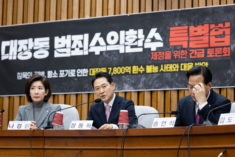그럼에도 국민의힘은 이날에도 대장동 공세에만 골몰했다. 당 지도부는 의원총회에서 대장동 국정조사 요구와 필리버스터 경고에 뜻을 모은 데 이어, 대장동 범죄수익 환수 특별법 제정을 위한 긴급토론회를 개최했다. 장동혁 대표는 22~23일에 이어 25일과 30일, 내달 1~2일 전국을 순회하며 장외집회를 벌여 대장동을 앞세운 대여공세에 나설 예정이다.