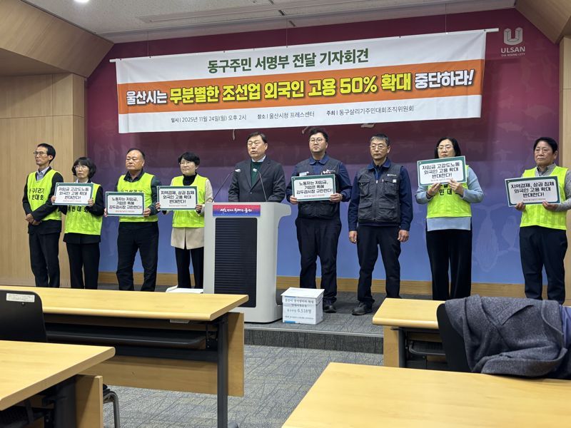 이어 조선업종 외국인 노동자 고용을 확대를 반대하는 울산 동구 주민 6518명의 서명부를 이날 울산시와 고용노동부에 전달했다.