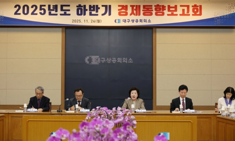 대구상공회의소는 지난 24일 대구상의 10층 대회의실에서 홍성주 대구시 경제부시장 등이 참석한 가운데 2025년도 하반기 경제동향보고회를 개최했다.