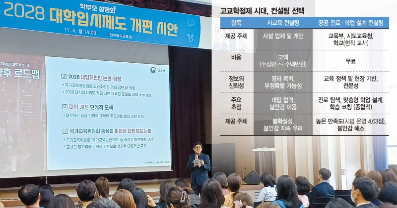 이날 설명회에 참석한 덕성여중 학부모는 "학교마다 진학 상담 선생님들이 있어 수시로 상담도 해준다 하니 굳이 사교육 컨설팅을 받지 않아도 될 것 같고, 이런 설명회나 공교육을 활용해도 충분히 가능할 것 같다"고 말했다.