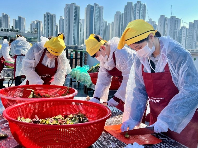 이번 봉사에는 임직원과 자녀 30여명이 재료 손질부터 김치 속 만들기까지 직접 참여하며 총 400포기(약 300만 원 상당)의 김장 김치를 완성했다. 완성된 김치는 지역의 소외계층 아동가정과 복지시설에 전달됐다.