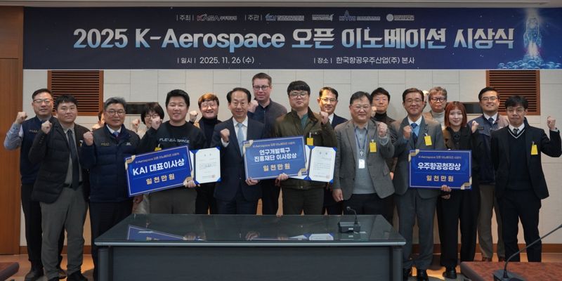 [파이낸셜뉴스] KAI(한국항공우주산업)는 우주항공청이 주최하고, KAI·연구개발특구진흥재단, 한국항공우주연구원·진주강소특구(경상국립대)가 함께 주관한 '2025 K-Aerospace 오픈 이노베이션' 프로그램에서 플렉셀스페이스, 쿤텍, 심스리얼리티 등 협력기업 3개사를 최종 선정하고 시상식을 가졌다고 26일 밝혔다.