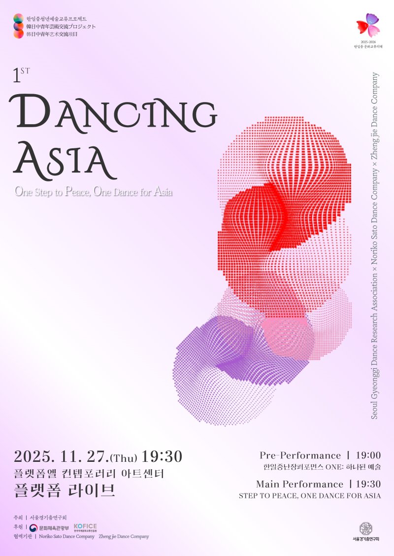 [서울=뉴시스] 최희정 기자 = 한국, 일본, 중국의 청년 예술가들이 모여 이해와 공감을 춤으로 펼치는 '한일중청년예술교류프로젝트 제1회 Dancing ASIA(댄싱 아시아)'가 오는 27일 오후 7시 30분 서울시 강남구 플랫폼엘 플랫폼 라이브에서 펼쳐진다.