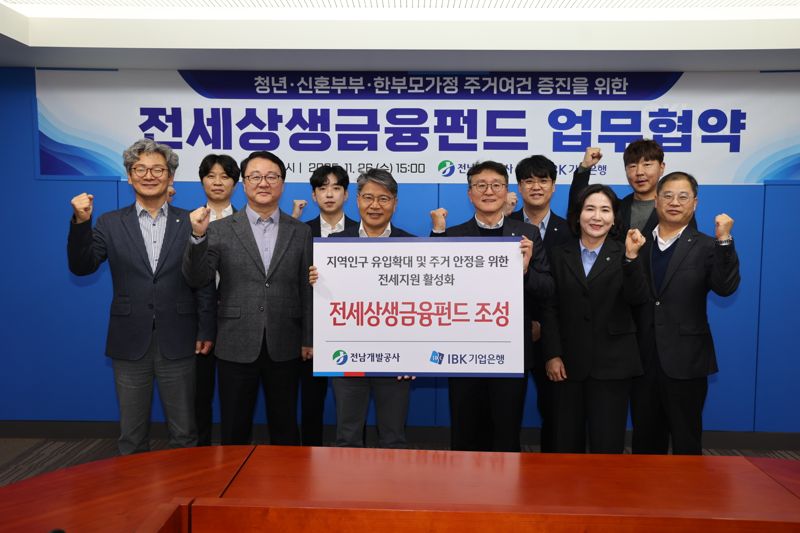 전남개발공사는 26일 IBK기업은행과 '전세상생금융펀드' 조성을 위한 업무협약을 체결했다고 밝혔다.