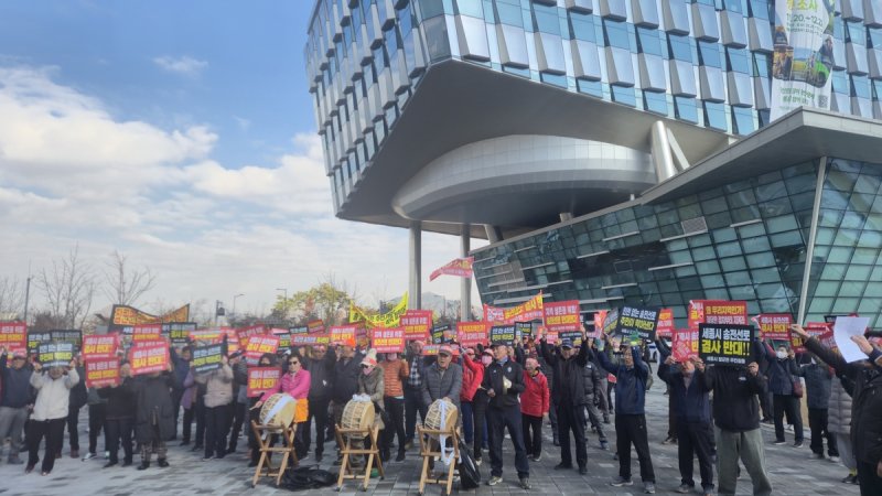 주민 100여명 한전·세종시청 찾아 송전선로 건설 반대 집회