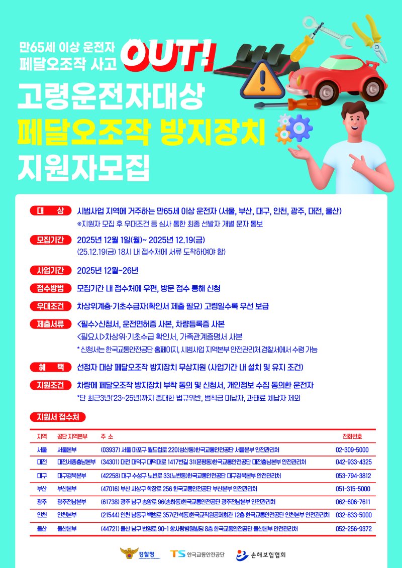 특히 내달 1일부터는 경찰, 한국교통안전공단, 손해보험협회가 협약을 통해 '페달 오조작 방지 장치 2차 무상 보급 사업'을 시행한다.
