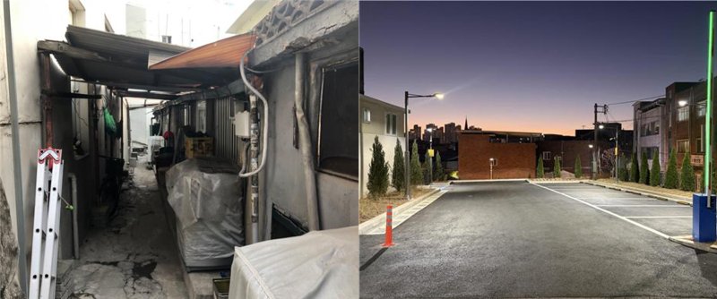 (대구=뉴스1) 이성덕 기자 = 대구 서구는 27일 낙후된 평리1동 열차촌 골목을 공영주차장으로 조성했다고 밝혔다.