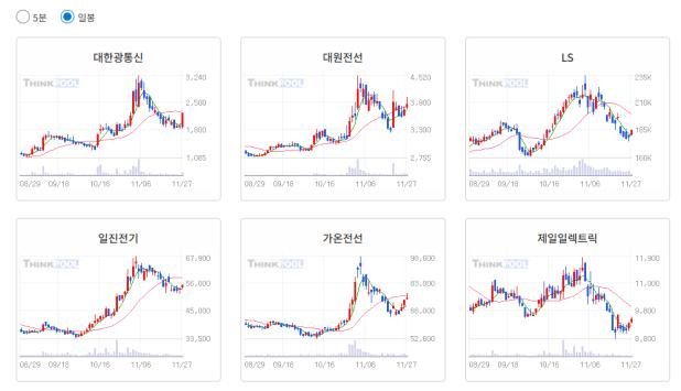 ※ [전선] 이슈 관련 종목 : 대한광통신, 대원전선, LS, 일진전기, 가온전선