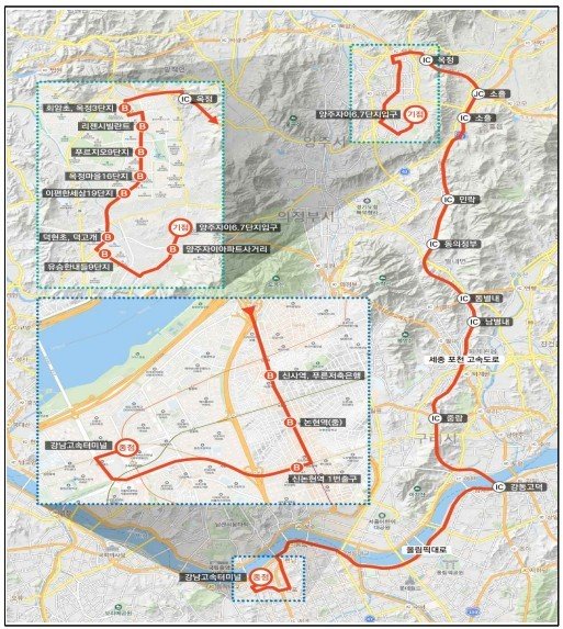신규 노선은 시 삼숭동 자이아파트에서 출발해 고읍지구와 옥정신도시를 경유한 뒤 옥정IC를 통해 세종-포천고속도로로 진입, 신사역과 논현역을 지나 강남고속버스터미널까지 운행할 계획이다.