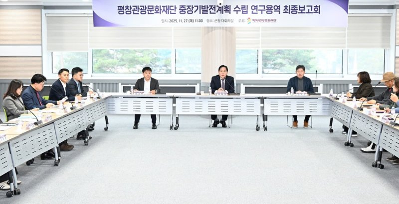 [평창=뉴시스]이덕화 기자 = 강원 평창관광문화재단은 군청 대회의실에서 중장기 발전 계획 최종 보고회를 열었다고 27일 밝혔다.