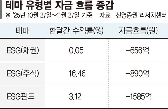 ESG 유형 펀드는 10월 들어 3개월만에 순유출을 기록했다. 주식형 ESG 펀드에서도 차익 실현성 환매가 늘며 일부 유형에서 자금이 이탈했다.