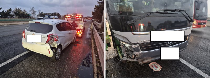 27일 당진소방서 등에 따르면 이날 오후 5시4분께 서해안고속도로 서울방향 273.4㎞ 지점 충남 당진시 송악읍 복운리에서 26명이 탑승한 관광버스가 경차를 추돌하고 뒤이어 가드레일 들이받고 멈춰섰다.