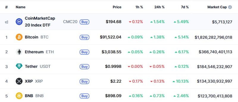 28일 오전 6시 30분 현재 글로벌 코인 시황 중계사이트 코인마켓캡에서 비트코인은 24시간 전보다 1.38% 상승한 9만1522달러를 기록하고 있다.