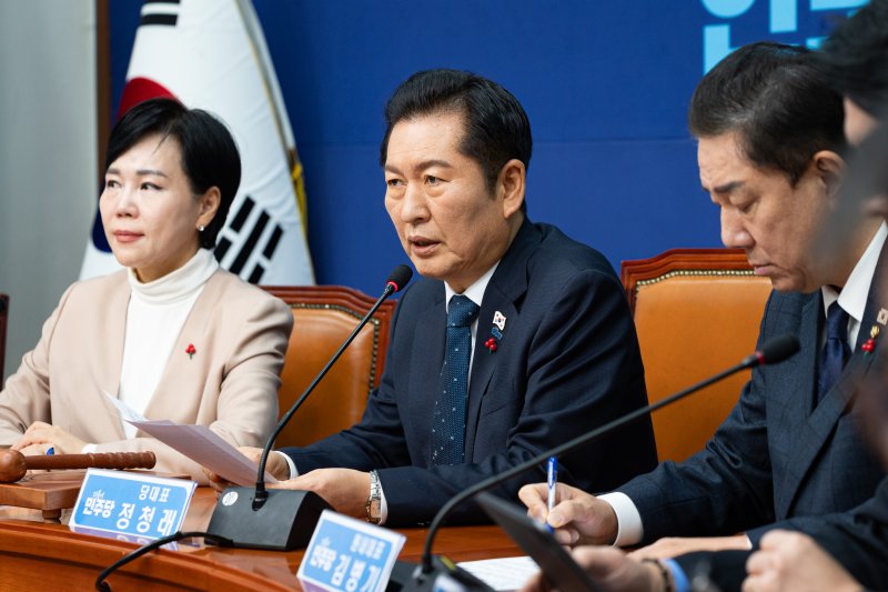 (서울=뉴스1) 임윤지 기자 = 정청래 더불어민주당 대표는 28일 국민의힘이 12·3 비상계엄 1년을 맞아 당 차원의 대국민 사과 주장이 나오는 데 대해 "1년 동안 사과하지 않다가 잠시 소나기 피하려고 사과한들 무슨 소용이 있나"라고 비판했다.