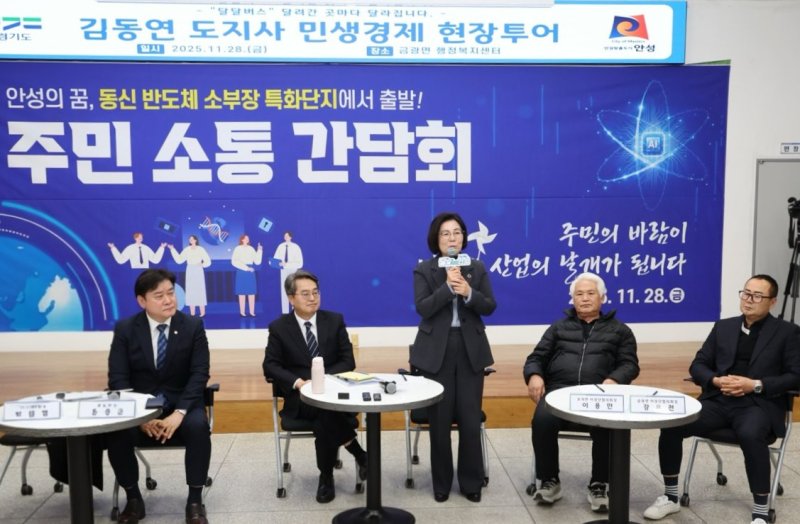 경기 안성시는 28일 김동연 경기도지사, 윤종군 국회의원 등이 참석한 가운데 동신 반도체 소부장 특화단지에서 ‘주민 소통 간담회’를 진행했다고 밝혔다.