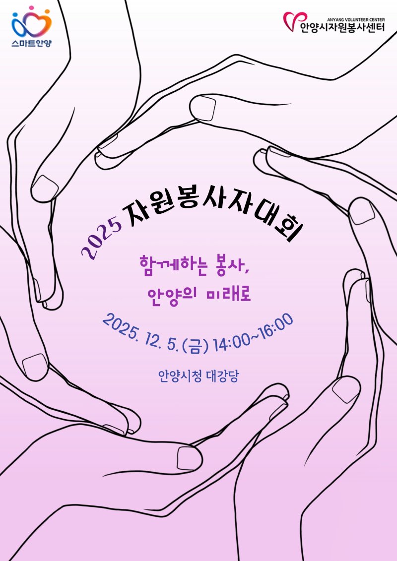 [안양=뉴시스] 박석희 기자 = 경기 안양시 자원봉사센터는 다음 달 5일 오후 2시, 시청 강당에서 ‘2025 안양시 자원봉사자 대회’를 연다고 29일 밝혔다. ‘자원봉사자의 날’(12월5일)을 기념해 열리는 가운데 '함께하는 봉사, 안양의 미래로'를 슬로건으로, 진행한다.