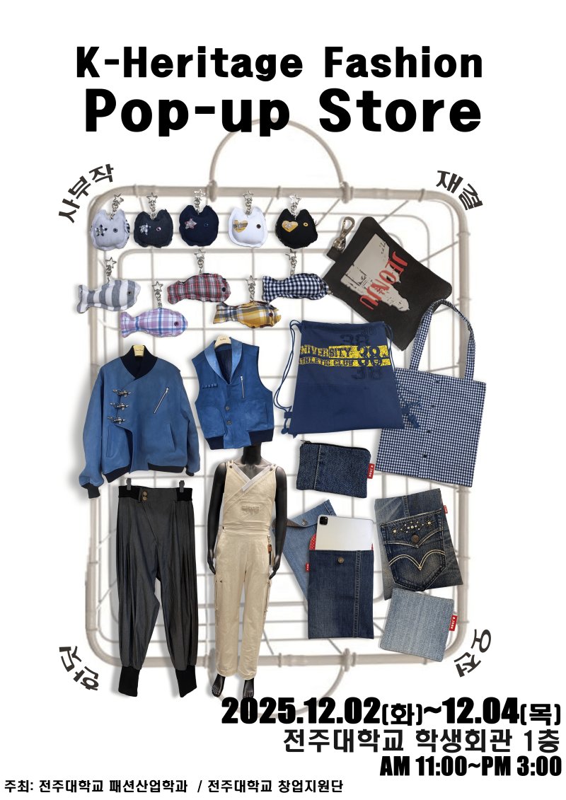 이번 팝업스토어에는 창업동아리 4팀(오전·사부작·재결·한딧)이 참여해 K-헤리티지를 기반으로 개발한 패션상품을 전시·판매한다.