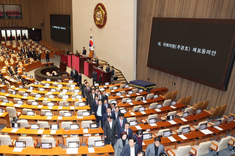 지난 27일 국회 본회의에서는 12·3 비상계엄 해제 표결 방해 의혹을 받는 추경호 의원에 대한 체포동의안이 여당 주도로 가결됐다. 추 의원에 대한 구속 전 피의자 심문(영장실질심사)은 내달 2일 오후에 예정돼 있다.