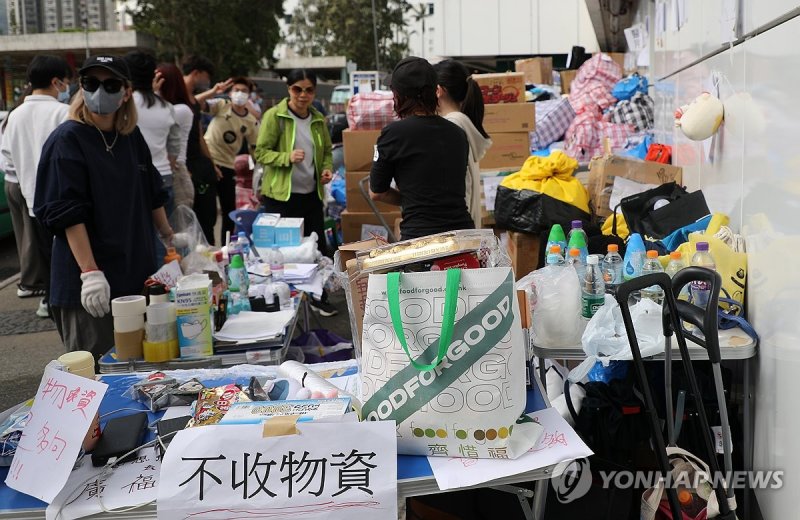 사망자 100명을 훌쩍 넘어선 대형 화재 참사가 난 아파트단지 '웡 푹 코트'와 가장 가까운 역인 타이포마켓역 인근은 곳곳에서 답지한 구호품을 옮기고 분류하는 자원봉사자들로 오전부터 발 디딜 틈 없었다.