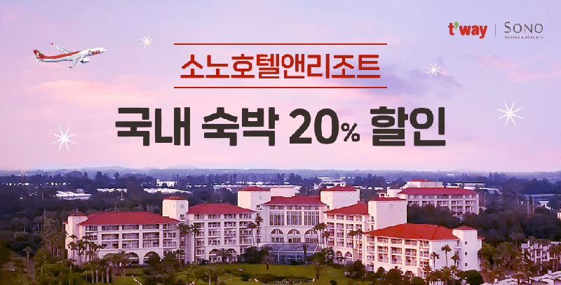 이번 프로모션은 양사 공식 홈페이지 및 모바일 애플리케이션(웹)을 통해 참여할 수 있으며, 티웨이항공 항공권 예약 고객과 소노호텔앤리조트 객실 예약 고객을 대상으로 상호 할인 혜택을 제공한다.