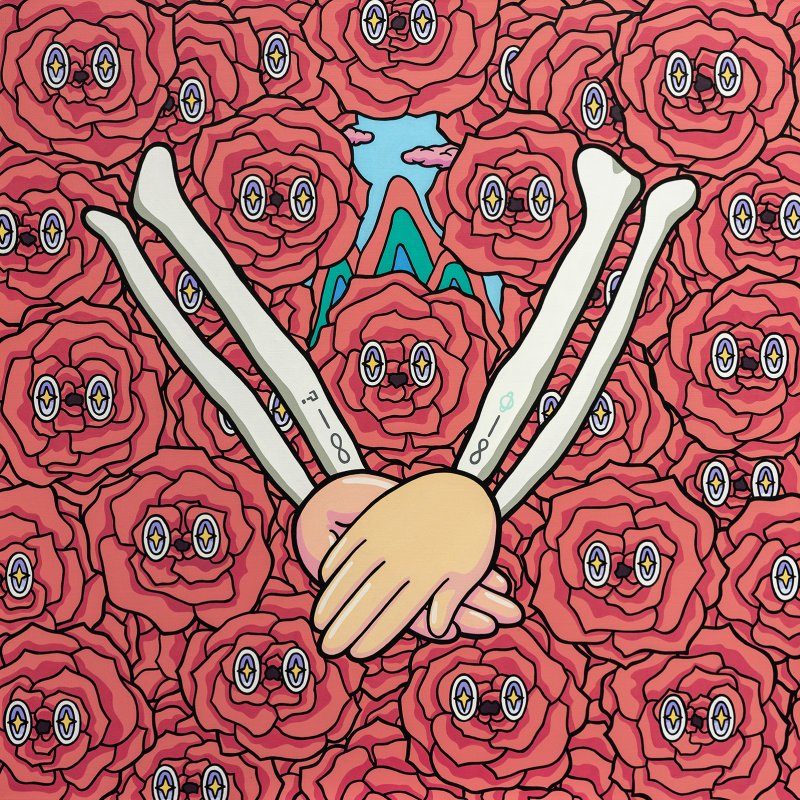 '기둥에 묶여 웃는 꽃', '밤풍경과 달의 추앙', '가득한 꽃의 미소' 등의 작품들에는 대비되는 색채와 인쇄된 듯 또렷한 만화적 선 표현에는 작가 특유의 강렬함과 유쾌함이 드러난다. 특히 화면에서 반복적으로 등장하는 유난히 크고 반짝이는 눈과 과장되게 웃고 있는 모양은 기쁨, 슬픔, 불안, 희망 등 복잡한 감정이 교차하는 얼굴로, 인간 내면의 복합성을 상징한다.