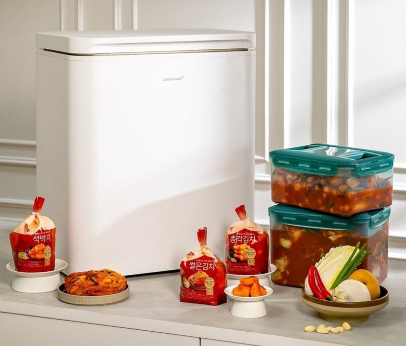 락앤락 김치통은 물방울과 접촉면을 줄여 세척이 쉽고 위생적으로 사용할 수 있다. '숨 쉬는 김치통'은 특허받은 숨밸브가 발효 과정에서 발생하는 가스를 자연스럽게 배출해 아삭한 식감을 유지한다. '발효숙성 김치통'은 누름판을 적용해 김치를 국물 속에 완전히 잠기도록 설계했다.
