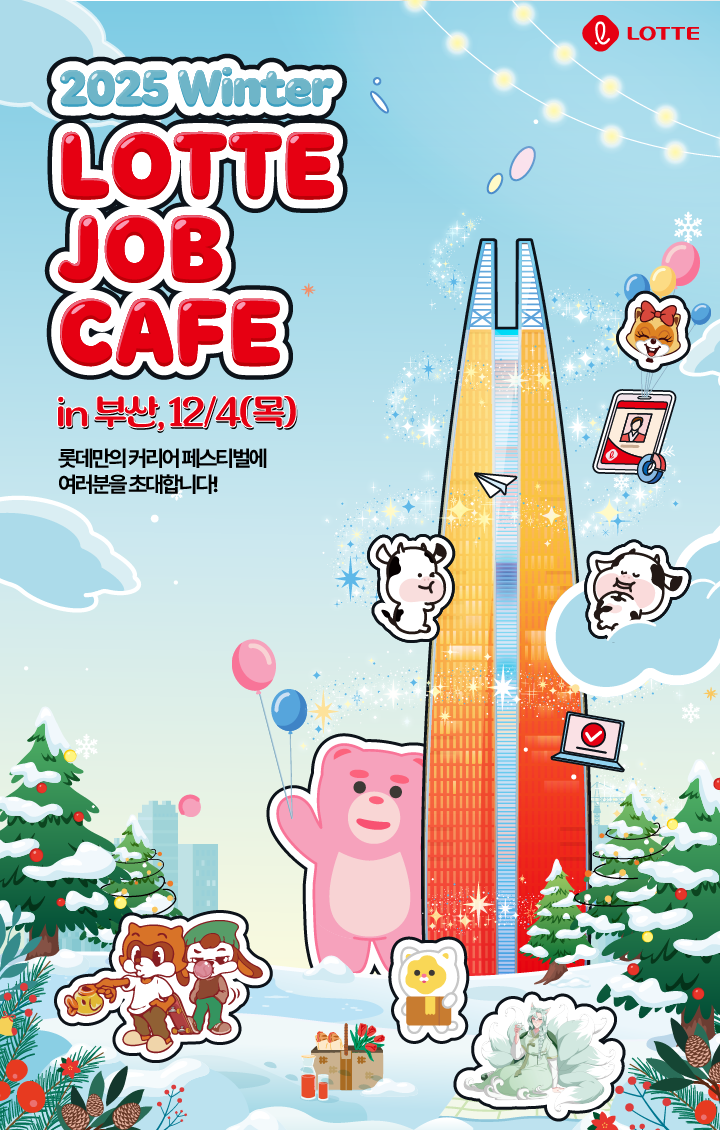 롯데그룹은 이달부터 진행하는 '예측 가능한 수시채용' 일정에 맞춰 오는 4일 낮 12시부터 오후 5시까지 롯데호텔부산 42층 밸뷰룸에서 '2025 윈터 롯데 잡카페'를 연다고 1일 밝혔다.