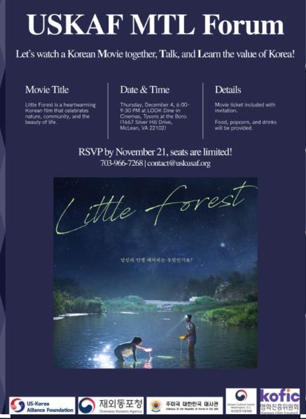이번 포럼은 재외동포청, 주미대한민국대사관, 영화진흥위원회 후원으로 워싱턴 한국문화원과 공동 주최하며, 상영 작품은 임순례 감독, 김태리 주연의 힐링 영화 '리틀 포레스트'가 선정됐다.