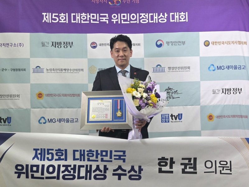 1일 제주도의회에 따르면 한 의원은 최근 국회도서관에서 열린 위민의정대상 시상식에서 행정·자치정책 분야 우수상과 국회 행정안전위원장상을 받았다.