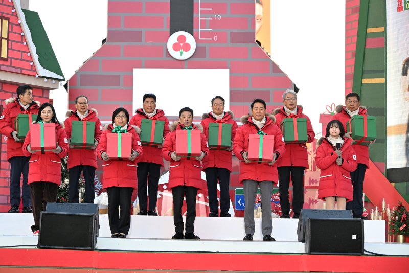 (서울=뉴스1) 구진욱 기자 = 오세훈 서울시장은 1일 광화문광장에서 열린 '희망2026 나눔캠페인 출범식'에 참석해 '사랑의 온도탑' 점등에 참여했다.