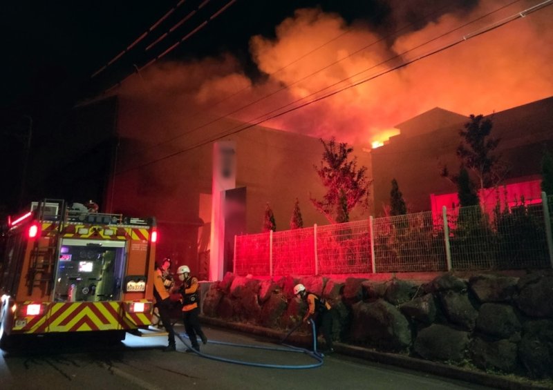 제주도소방안전본부에 따르면 이날 오후 9시 27분쯤 서귀포시 토평동 토평공업단지 내 폐목재 처리 업체의 야적장에서 화재가 발생했다는 119 신고가 접수됐다.