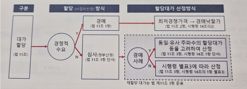 전파법 11조 '예상되는 매출액, 할당대상 주파수 및 대역폭 등 주파수의 경제적 가치를 고려해 산정'