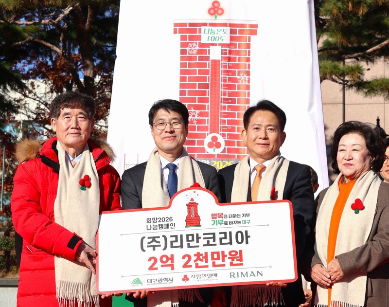 【파이낸셜뉴스 대구=김장욱 기자】㈜리만코리아가 지난 1일 대구국채보상운동기념공원에서 열린 '희망2026 나눔캠페인' 출범식에서 2억원 상당 물품을 기부하며 '대구 나눔 1호 기업'으로 선정됐다.