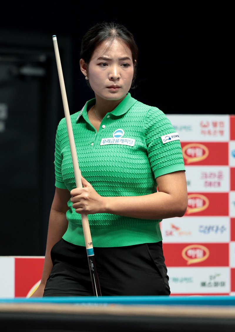 [서울=뉴시스] 하근수 기자 = '캄보디아 특급' 스롱 피아비(우리금융캐피탈)가 여자프로당구(LPBA) 8차 투어 16강에 안착했다.