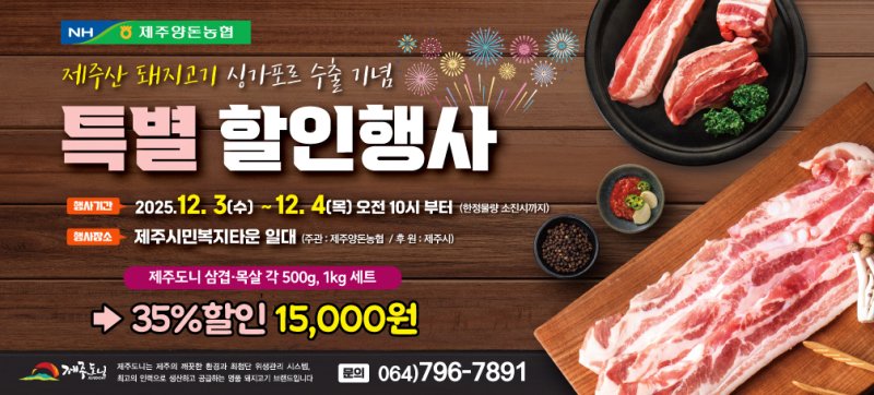 이 행사는 최근 제주산 돼지고기의 싱가포르 수출과 홈쇼핑 완판 성과를 도민과 함께 나누고 지역사회의 소비를 촉진시키기 위해 기획됐다.