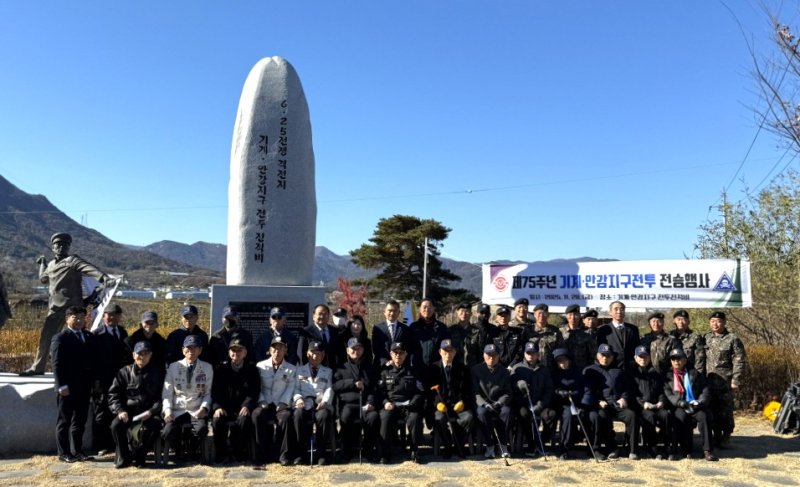 [포항=뉴시스]송종욱 기자 = 육군 제50사단 화랑여단은 포항시 북구 기계면에 있는 기계·안강지구 전투 전적비에서 '제75주년 기계·안강지구 전투 전승 행사'를 했다고 2일 밝혔다.
