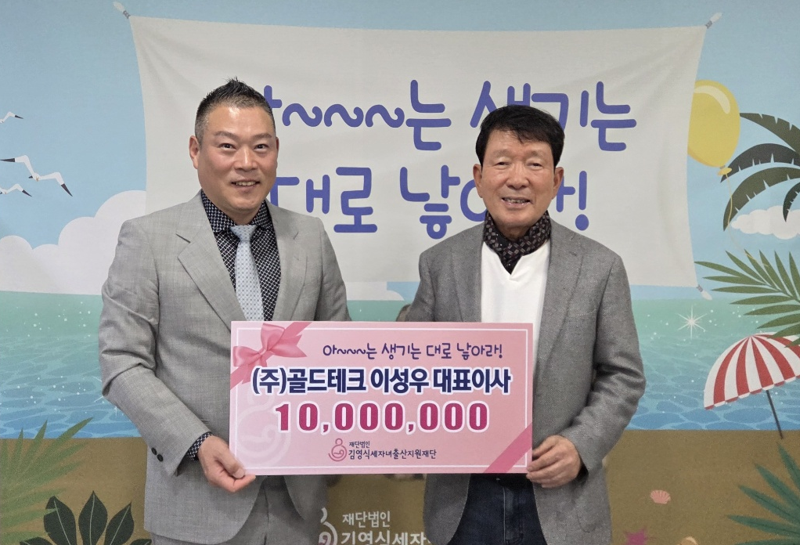 [파이낸셜뉴스] 주얼리·귀금속 가공기계 전문기업 ㈜골드테크 이성우 대표이사가 지난달 26일 김영식세자녀출산지원재단에 1000만원을 기탁했다.
