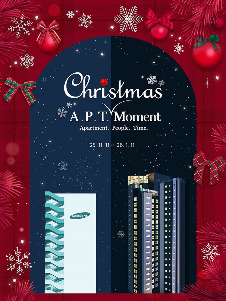 이번 '아파트 크리스마스 모먼트' 전시는 아파트에서의 일상 속 크리스마스 풍경을 공간(Apartment), 사람(People), 시간(Time)을 의미하는 'A.P.T.'세 가지 요소로 풀어낸 것이 특징이다. 전시는 오는 1월 11일까지 운영된다.