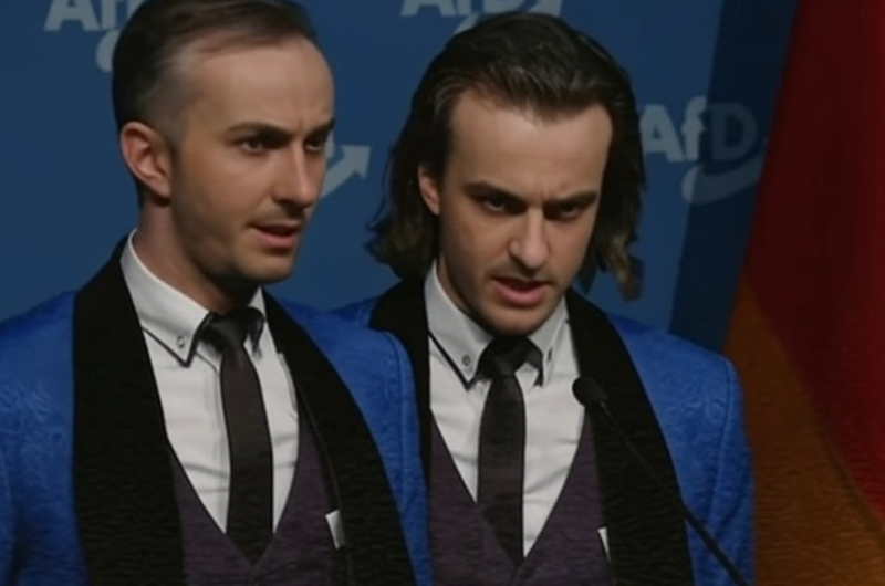 1일(현지시간) 타게스수피겔 등 독일 현지 언론은 지난달 29일 헤센주 기센에서 열린 독일대안당(AfD) 청년조직 출범식에서 집행부 선거에서 알렉산더 아이히발트가 파란 연미복 차림으로 연설자로 나서면서 히틀러가 자주 하던 발음을 구사하는 등 문제의 행동을 했다고 보도했다.