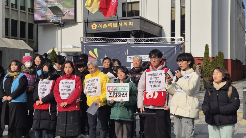 이날 긴급행동은 기자회견문을 통해 "학생인권조례 폐지 시도는 학생의 인권을 탄압하고 소수자에 대한 차별과 억압, 혐오의 구조를 유지하기 위한 공격"이라고 비판했다. 또 서울시의회를 향해서는 학생인권조례 폐지 추진 중단, 국회를 향해선 학생인권법 제정을 요구했다.