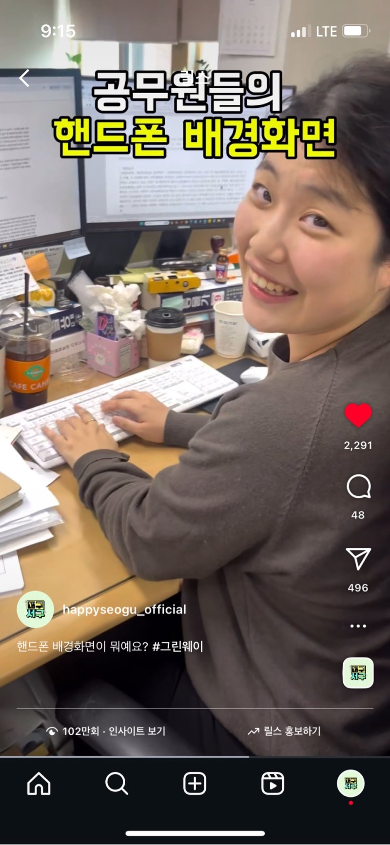 이번 영상은 직원들의 실제 휴대전화 배경화면을 공개하는 형식으로 제작돼 공무원의 소소한 취향과 일상을 담아낸 것이 특징이다.