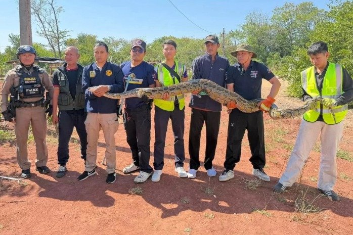 2일 방콕포스트에 따르면 태국 경찰은 해당 지역에서 비단뱀이 목격됐다는 신고를 접수하고 지난달 30일 한 호텔 뒤편 숲에서 비단뱀을 잡았다. 이번 포획엔 약 10명의 당국 인원이 투입됐다.