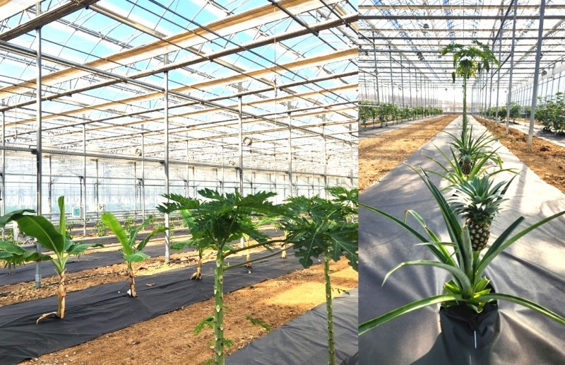 북안면 반정리 3만9531㎡ 규모에 스마트 환경제어 시스템을 갖추고 애플망고, 바나나, 파파야 등 20여 종의 아열대 작물을 실증·연구한다.