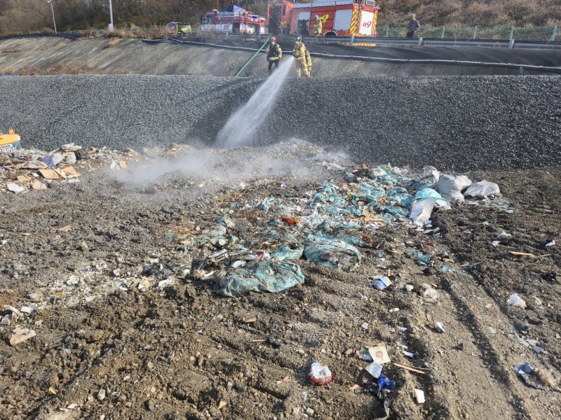 [울산=뉴시스] 박수지 기자 = 2일 오전 11시 56분께 울산 남구 성암동 한 생활폐기물 매립장에서 불이 났다.