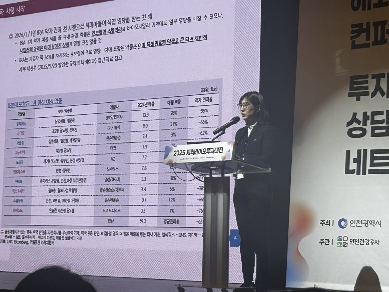 허혜민 키움증권 연구원은 2일 인천 송도컨벤시아에서 열린 2025 제약바이오투자대전에서 “코스피 제약사의 순이익이 올해 대비 내년 30% 증가할 것으로 전망된다. K-바이오의 체력이 강화되고 있음을 보여준다"고 말했다.