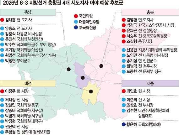 지역 정치권 관계자는 "내년 지방선거는 민선 8기 지방정부 4년과 이재명 정부 1년을 평가하는 장으로, 민주당이 장악한 중앙권력과 국민의힘이 다수인 지방권력 지형에 어떤 변화를 초래할지가 관전 포인트"라면서 "전국 판세의 축소판이자 안정론과 견제론 사이에서 스윙보터 역할을 해 온 충청권 민심 향배가 이번 선거의 성패를 가를 것"이라고 말했다.