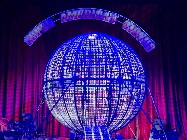 무대 막바지는 환상적인 오토바이 묘기로 꾸려졌다. 철제 구 안에서 오토바이 두 대가 빠른 속도로 동시에 달리는 '글로브 오브 데스' 묘기다. 두 명의 라이더가 서로를 스치듯 달리며 상하좌우로 원을 그리자 천막 안은 엔진 소리와 관객의 함성으로 가득 찼다.