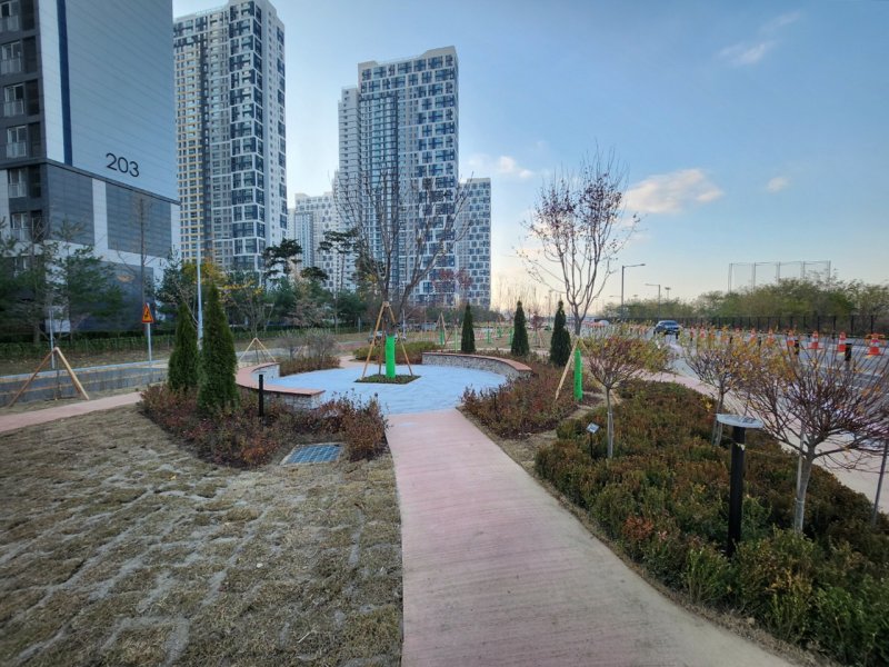 이와 함께 도로 인접 구간에는 가로 경관과 주변 환경과의 조화를 위한 차폐식재로 보행 안전성과 경관 완성도를 높였으며, 지역의 특성을 반영해 도심 속 자연과 휴식 기능을 결합한 개방형 녹지공간으로 조성했다.