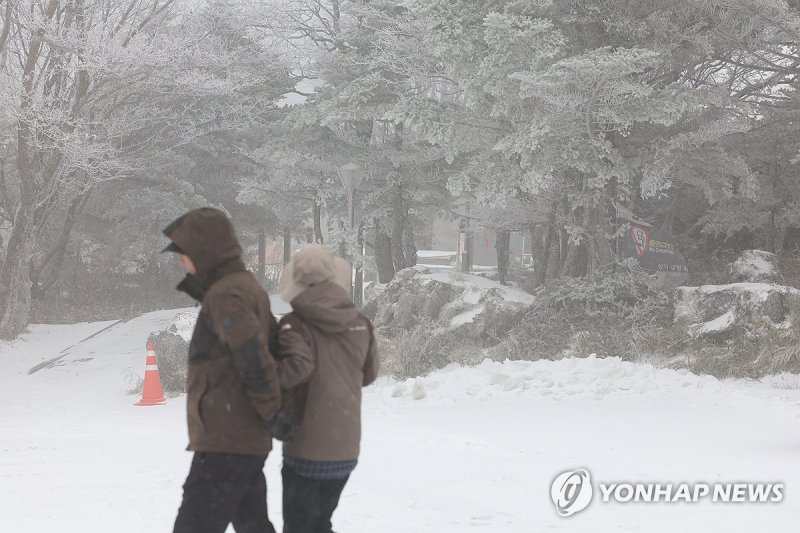 이날 오전 9시 기준 한라산 적설량은 삼각봉 8㎝, 사제비 3.4㎝, 어리목 3.3㎝, 성판악 1.5㎝, 남벽 0.7㎝ 등이다.
